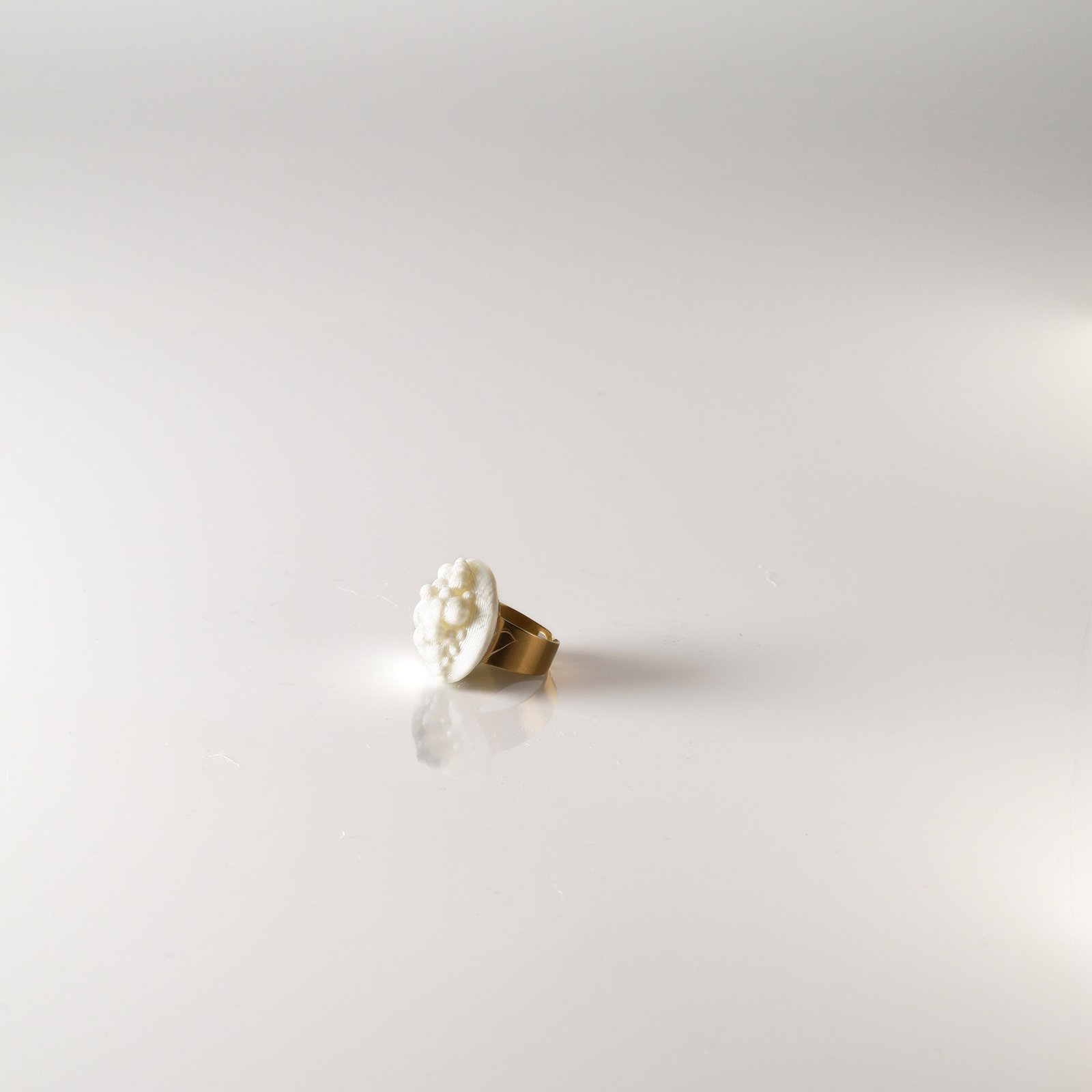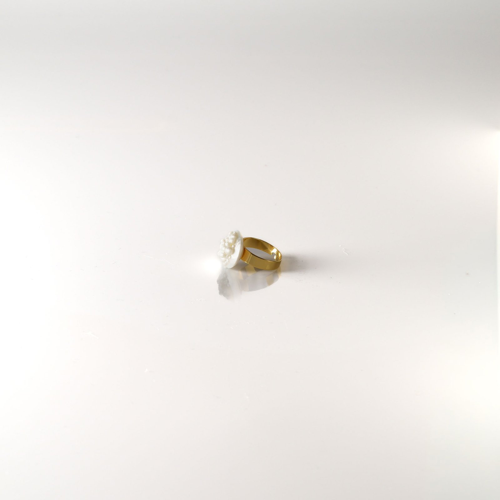 Moon Light captura la magia del polvo estelar disperso en un anillo escultórico y audaz. Su acabado metálico blanco suave evoca la luz reflejada en diminutas partículas cósmicas, aportando una energía ligera y lúdica.