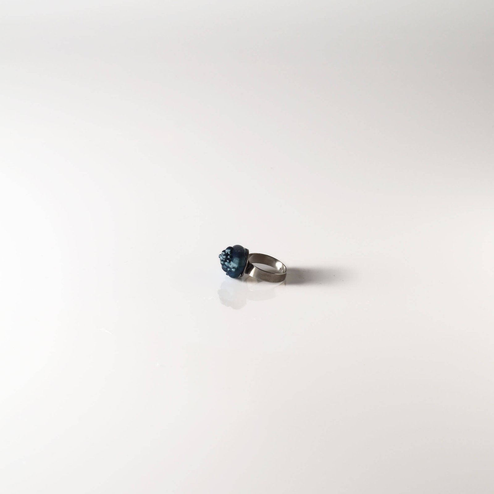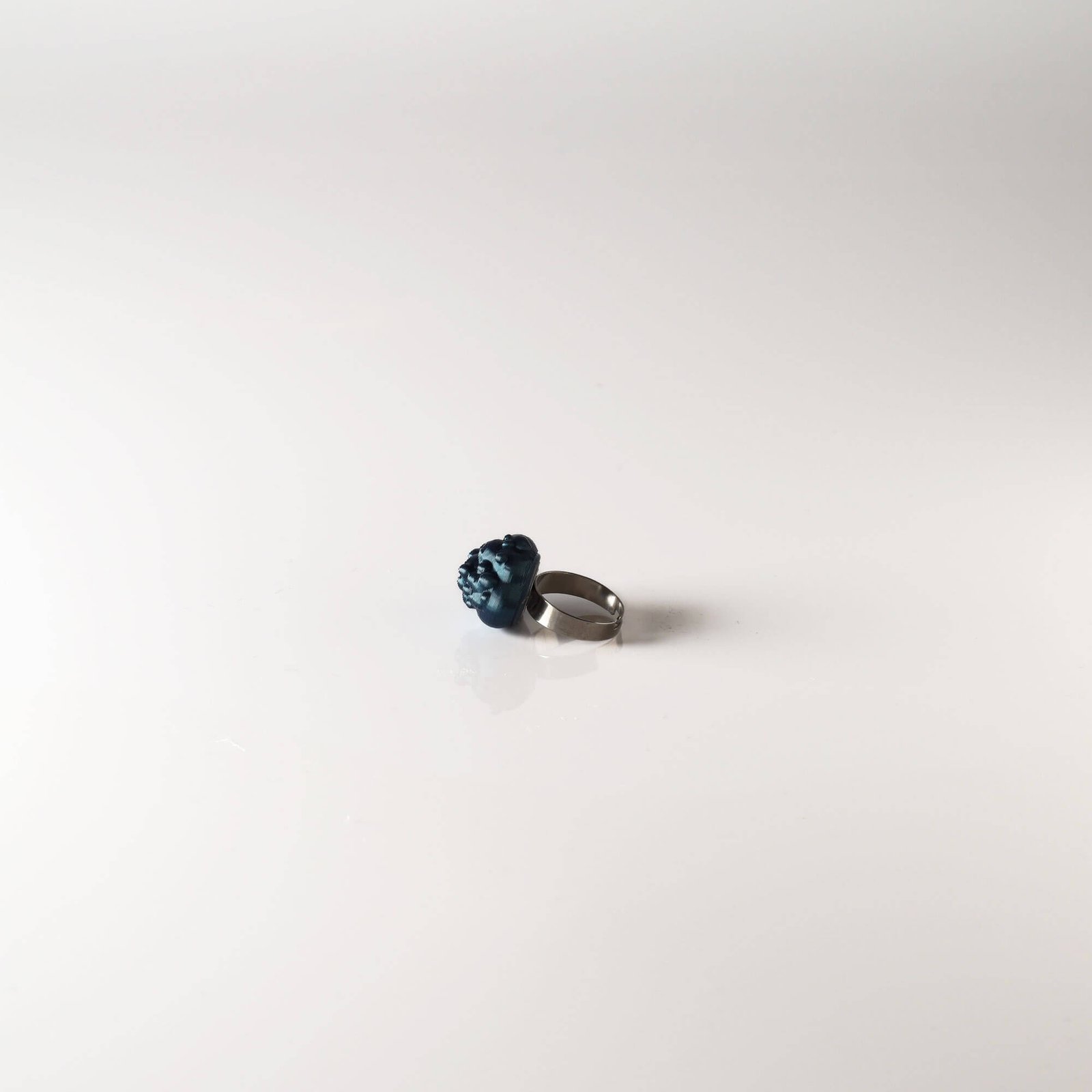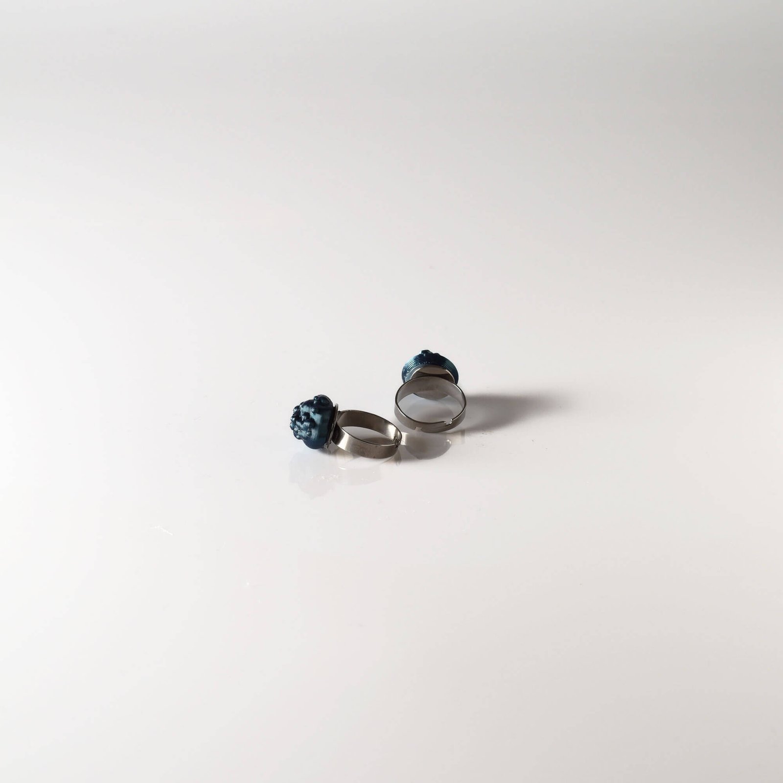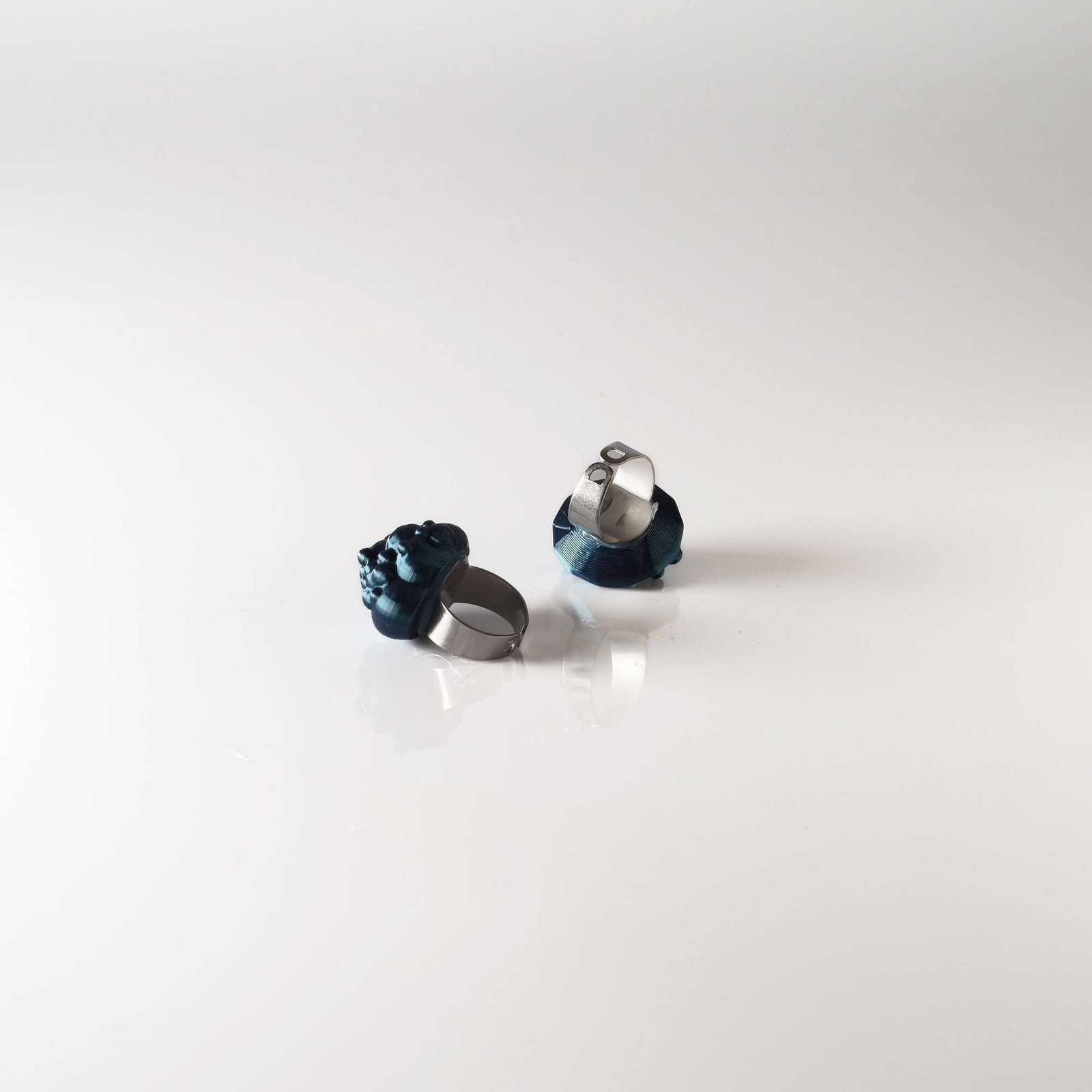 Sky Node brings the energy of open skies into a large bubble ring. Its cyan finish highlights the airy, sculptural shapes, creating a playful yet statement-making piece.