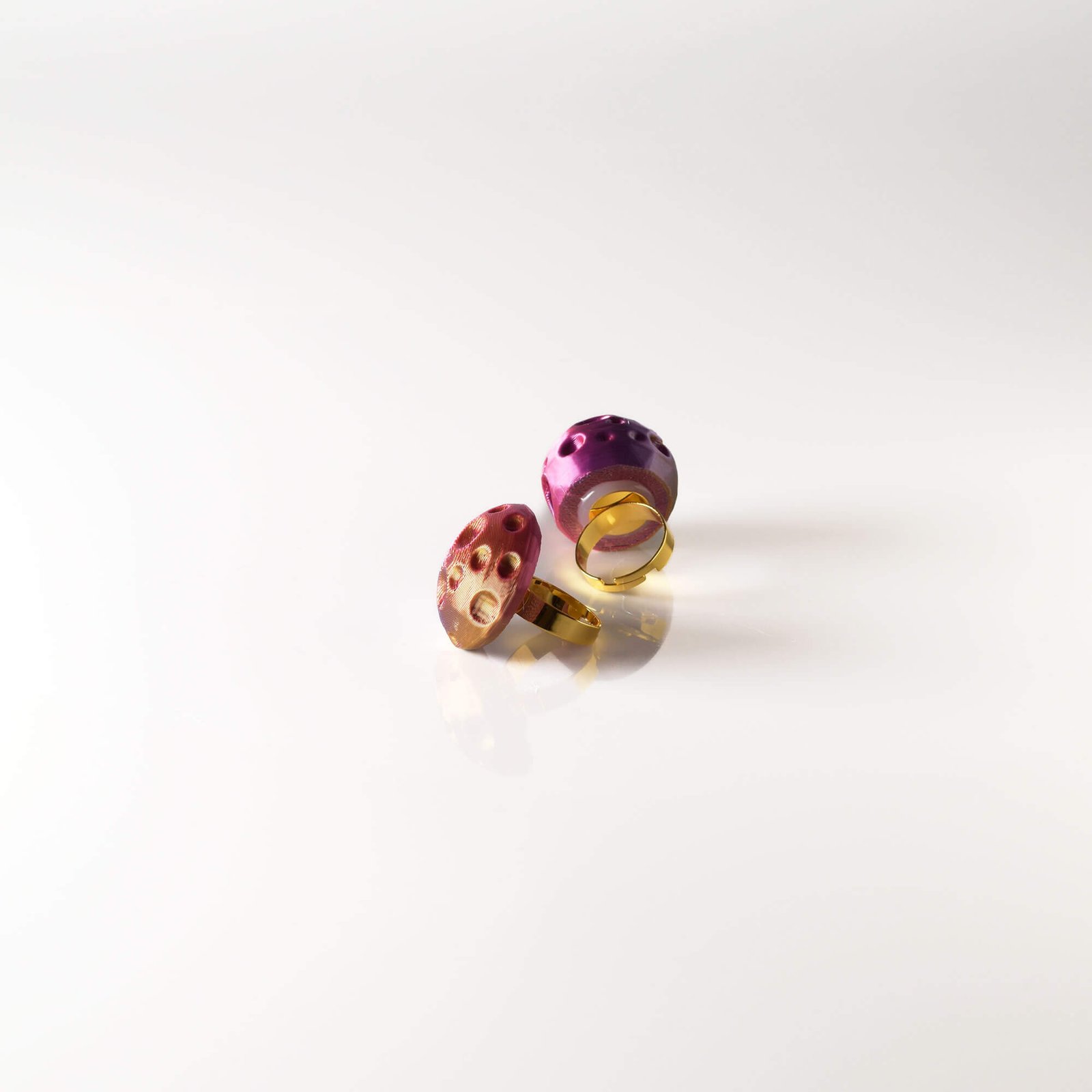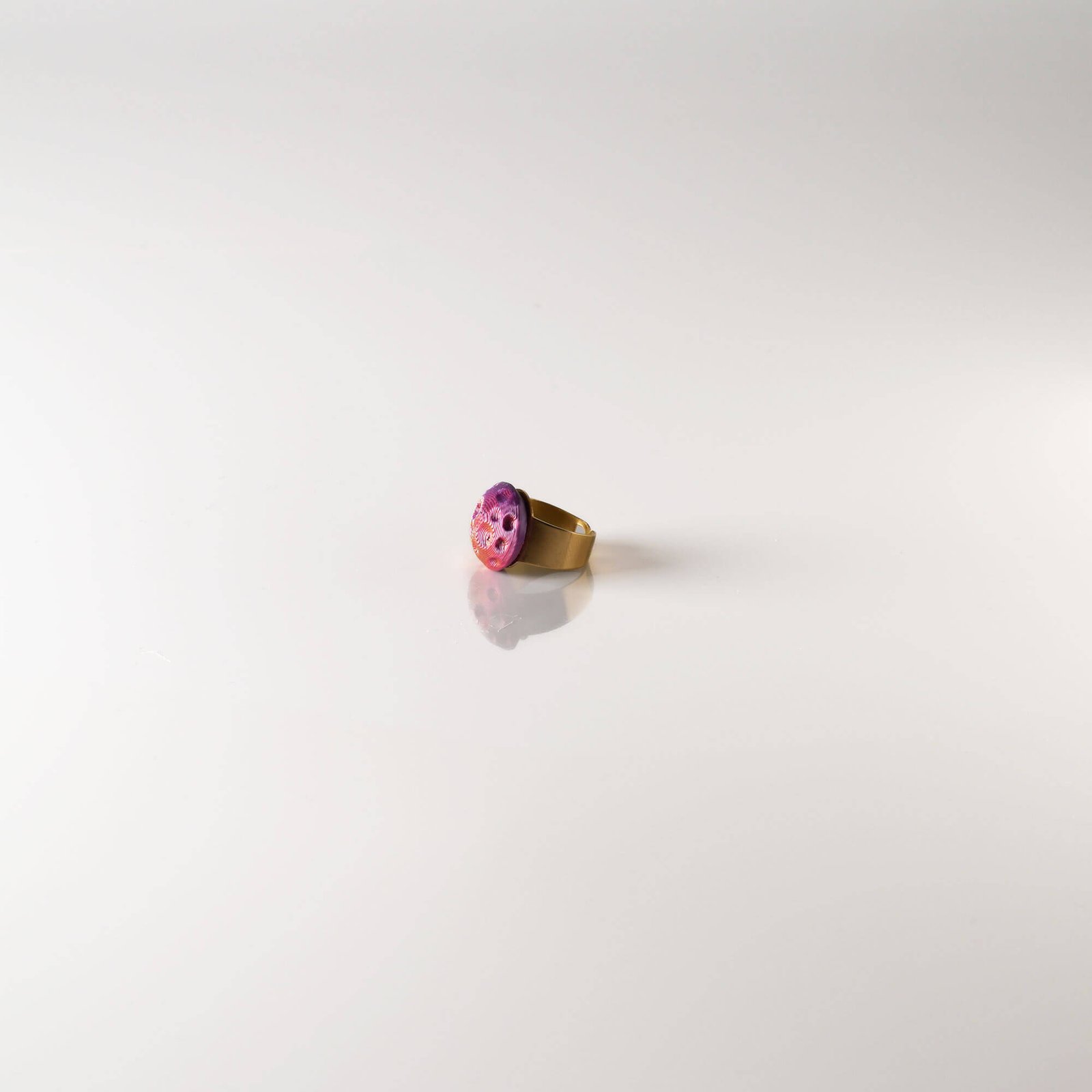- Iridescent purple half-moon ring