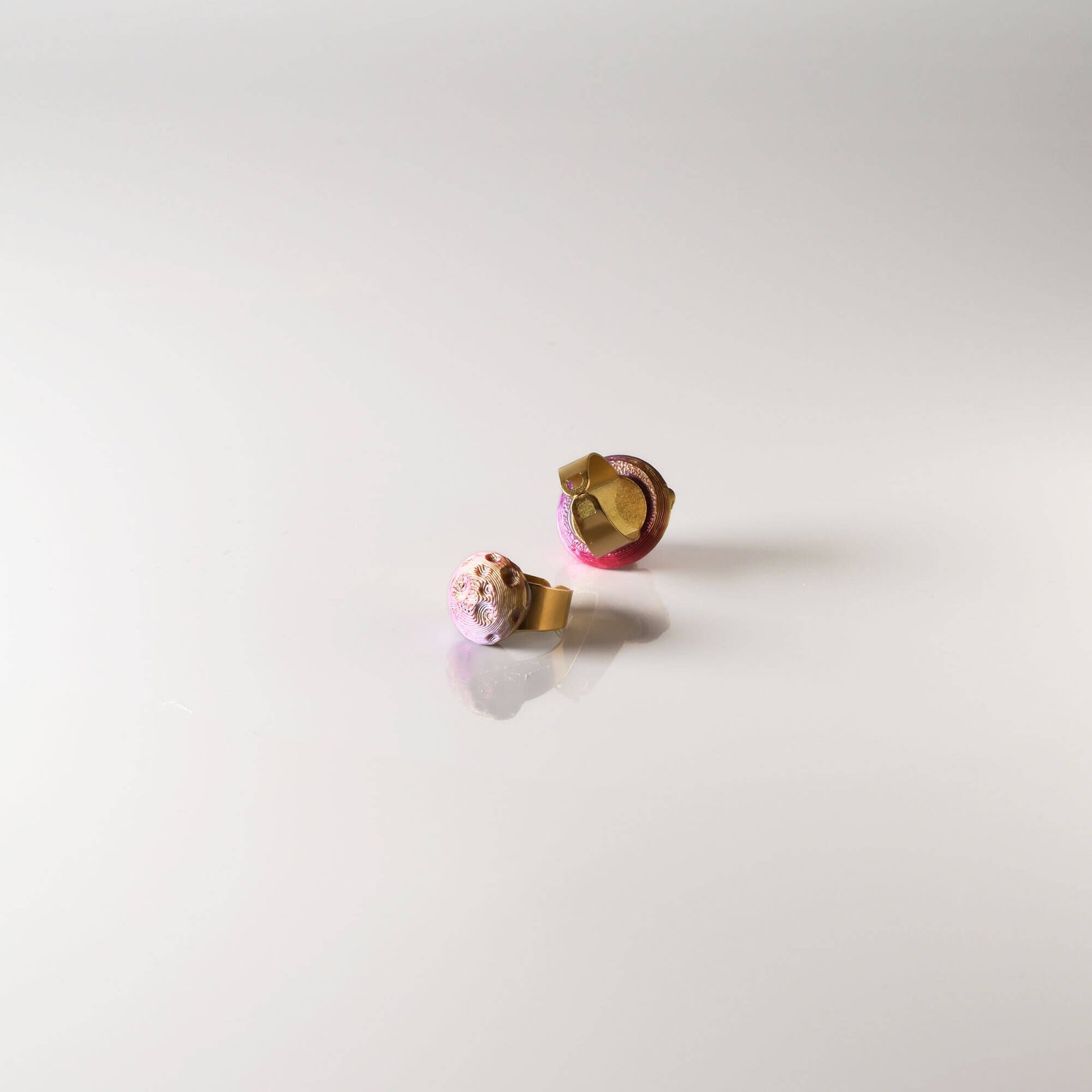 Cosmic Dusk reflects the moment when day fades into night. Its iridescent purple surface adds depth and mystery to the half-moon form, creating a refined and expressive piece.