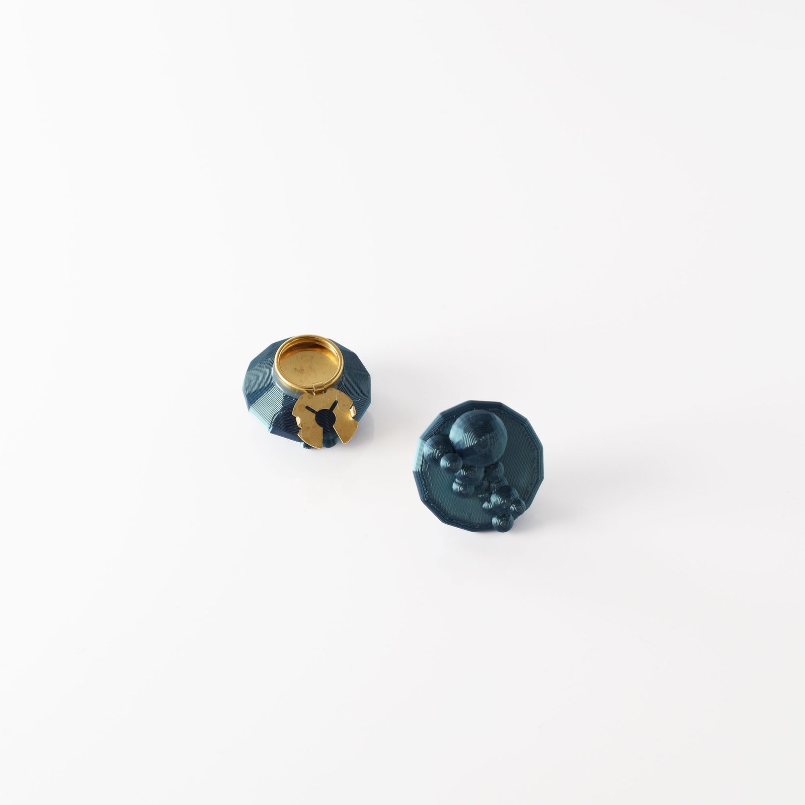The Cup Button Cover – Cyan brings a fresh, energetic tone to the collection. Its luminous surface and sculptural volume echo particles of light in motion.