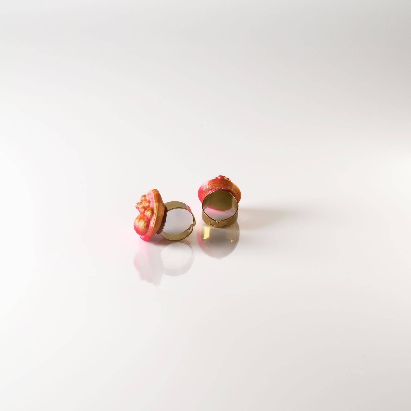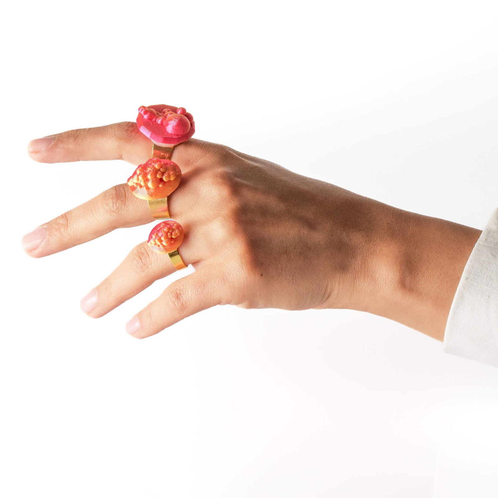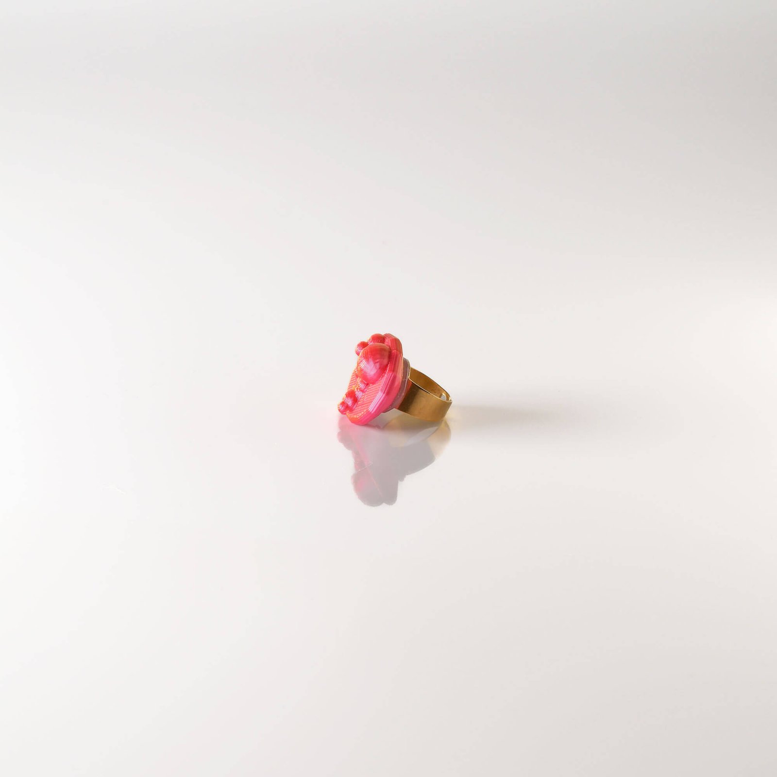 Fuchsia Pulse — Cup Ring combines sculptural bubbles with a diamond-cup shape in a vibrant iridescent fuchsia. Its metallic glow and playful form make it perfect for layering or standout wear.